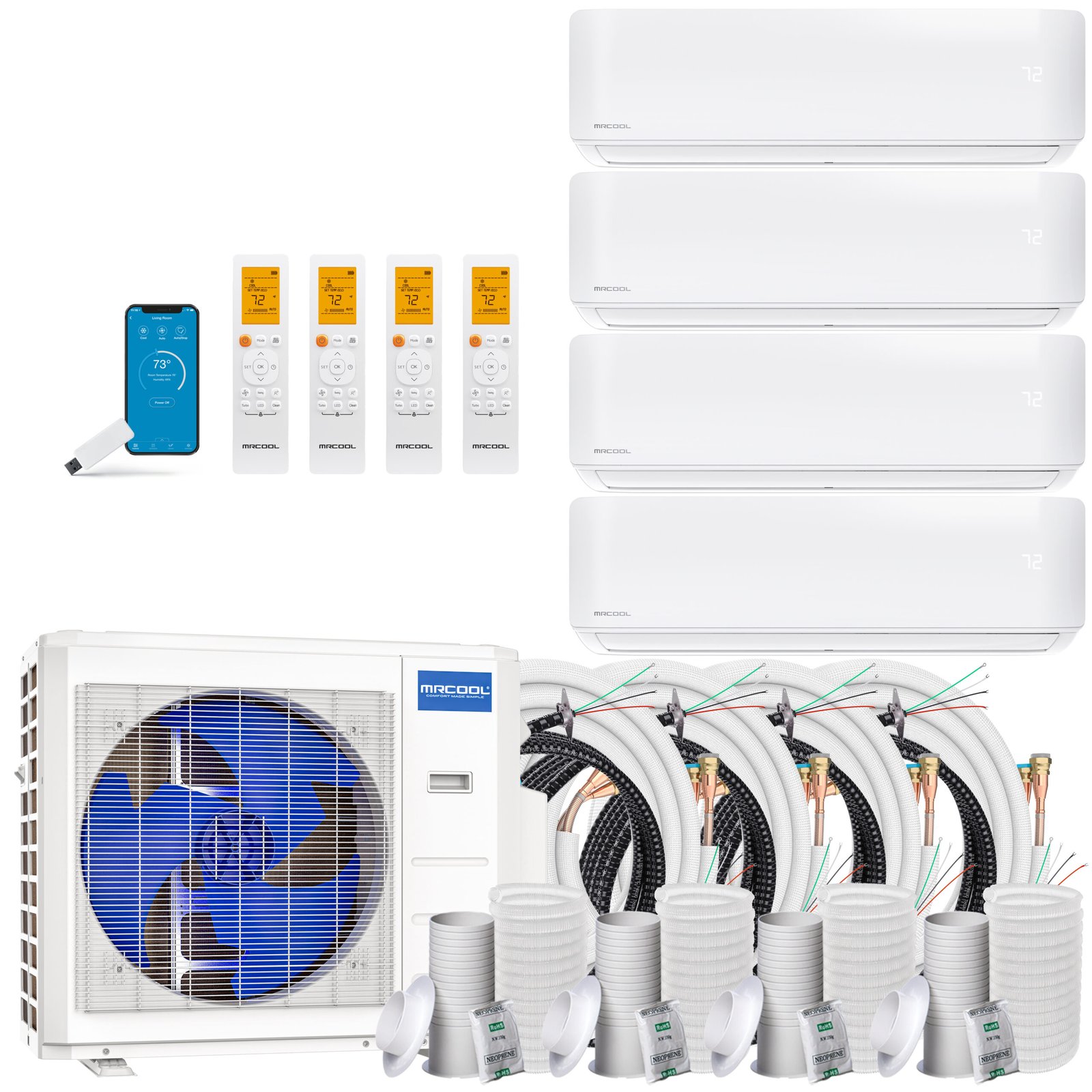If youÕre in need of comfort, our new 5th Generation MRCOOL¨ DIY¨ 27k BTU Multi-Zone Ductless Mini Split Condenser is the perfect solution! The acronym in the name is true – you can install this system on your own, without the assistance of an HVAC professional! YouÕll save money in more ways than one, too, due to the incredible efficiency of this system, which attains a SEER2 rating of 23 and a HSPF2-4 rating of 9.5. This condenser in particular is able to support up to 4 air handlers, meaning it can provide heat and air conditioning to four separate spaces equalling a total of 1,000 to 1,200 square feet.